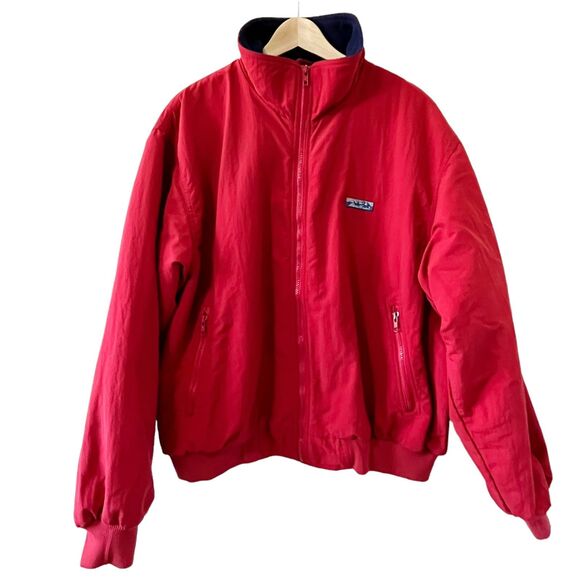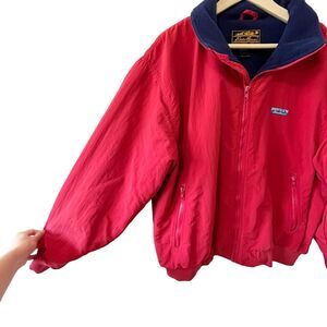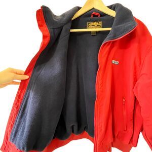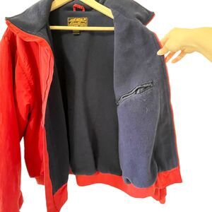 Vintage Eddie Bauer Polartec Harrington Jacket, Fleece Lined, Full Zip, Collar, Red and Blue Jacket, 2 Front Pockets
