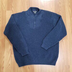 Description: VTG Eddie Bauer Ribbed Knit Henley Sweater Blue Preppy Academia Outdoor Mens XL