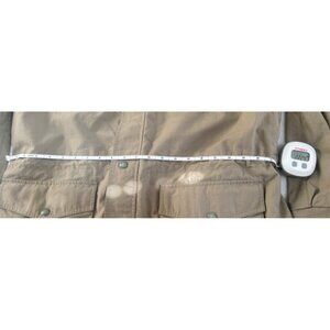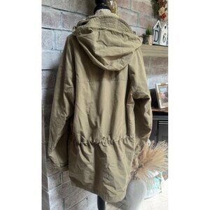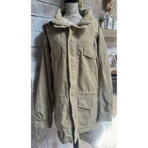 VTG Eddie Bauer Safari Jacket Coat Mens L Draw String Mock Collar Tan Mid-length- Great condition