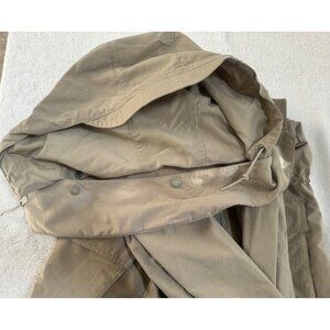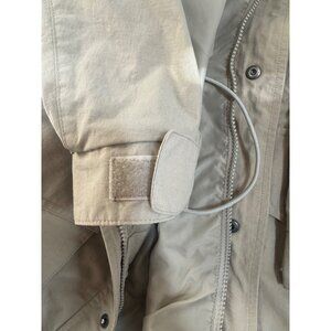 VTG Eddie Bauer Safari Jacket Coat Mens L Draw String Mock Collar Tan Mid-length