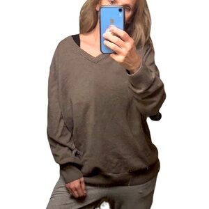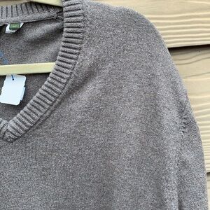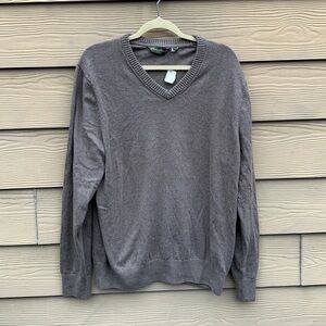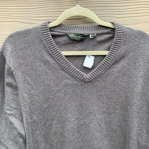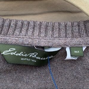VTG Eddie Bauer V-Neck Sweater XLT Cotton Cashmere Blend Tan Pullover Relaxed