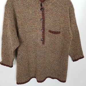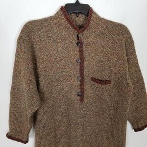 VTG Eddie Bauer Women 100% Wool Button Neck Sweater Sz M Brown Pullover Classic