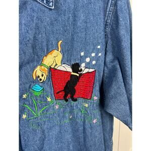 VTG Effeci Denim Short Sleeve Blouse Top Embroidered Dogs/Puppies Size XL