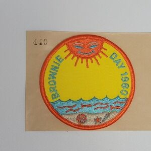 VTG Eighties Sew On Embroidered Patch, 3" Circle, Girl Scout Brownie Day 1980