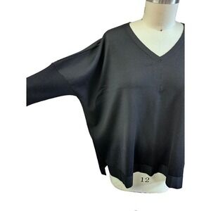 VTG Eileen Fisher Black Merino Wool Sweater Sz M Loose Fit Mint