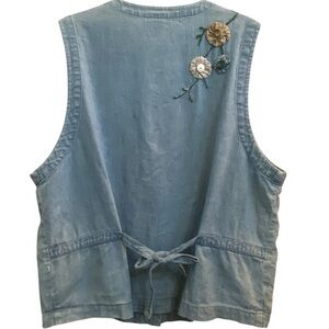 VTG Eileen Fisher Light Blue Chambray Denim Floral Embroidery V-Neck Vest SZ L