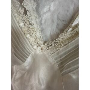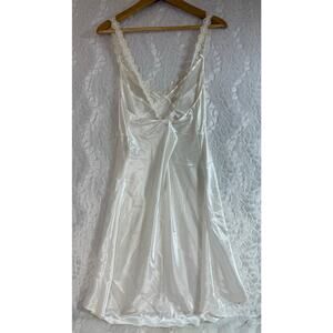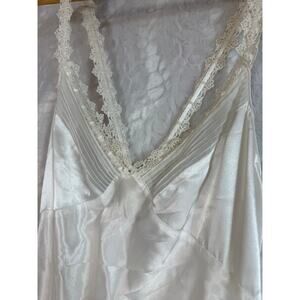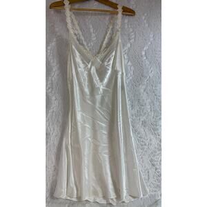 VTG Eileen West Romantic Lace Trim Satin Chemise Nightgown Slip Bridal White L