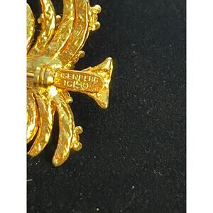 VTG Eisenberg Ice Christmas Tree Brooch Gold Tone Rhinestones Holidays