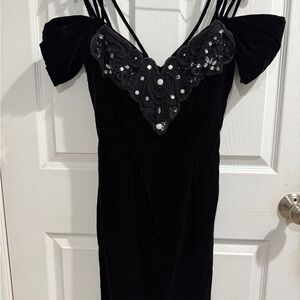 VTG Elegant Black Velvet Dress with Sequin Detailing Sweetheart 🖤