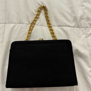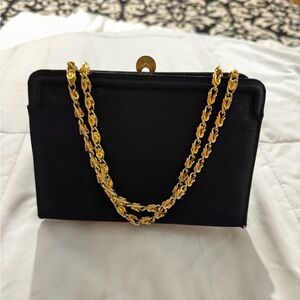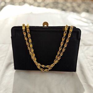 VTG Elegant Classy Black Clutch Purse Gold Chain Morris Moskowitz 60’s 70’s EUC