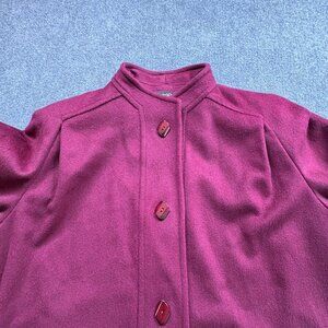 VTG Elegant Fashions Coat Womens Burgundy 15/16 Long Wool Blend Union Made USA