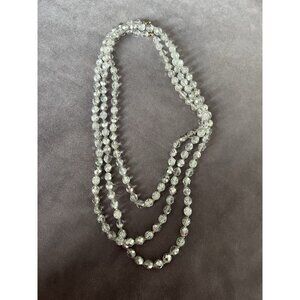 VTG Elegant Long Double-Strand Clear Crystal Bead Necklace