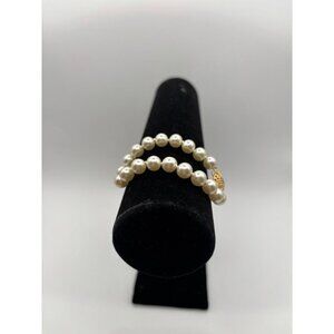 VTG Elegant White Pearl Bracelet Gold Clasp Women's Jewelry Accessory