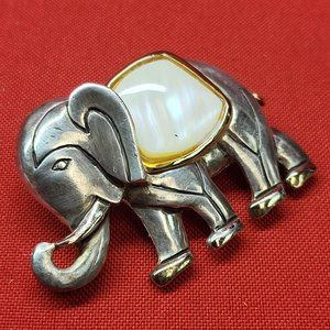 VTG Elephant Brooch Pin Pendant Metal Faux Abalone
