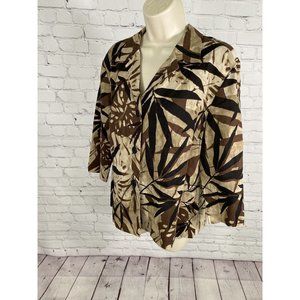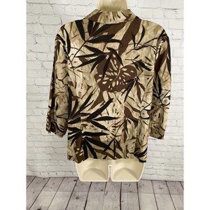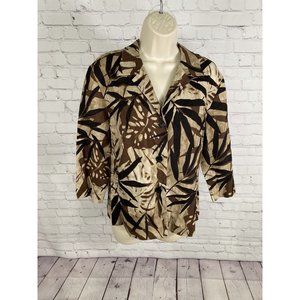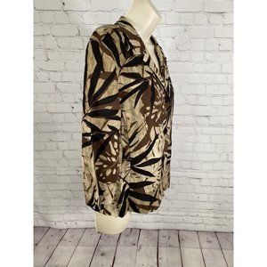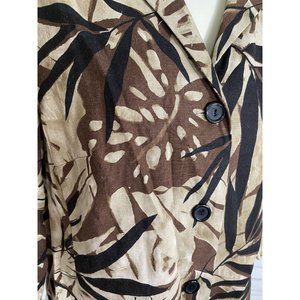 VTG Ellen Figg Linen/ Cotton Blend Brown Black Leafy Print Button Up Blouse 14