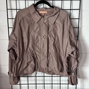 VTG Ellen Tracy Button Front Military Jacket Womens XL Tan Peplum