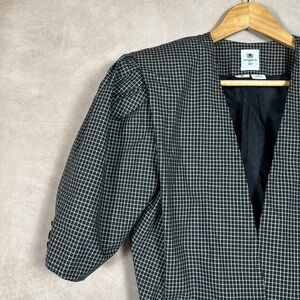 Style profile: Vintage, Designer, 80's, Shoulder Pads, Cropped, Black/White Checkered Pattern, Single Button Blazer Jacket Bolero