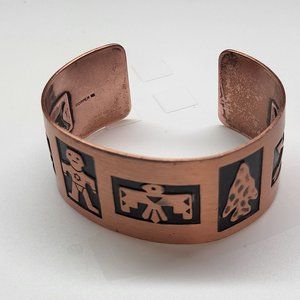 VTG Embossed Copper Bangle Bracelet Navajo Thunderbird Arrowhead Native American