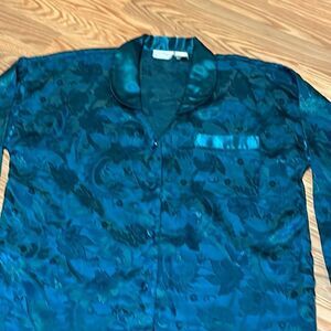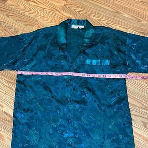 VTG Embossed Satin Night Shirt, Sleep Shirt, Nightgown, Green, Silky, Small