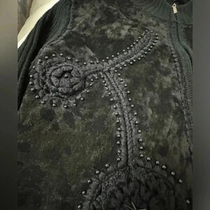 VTG Embroidered Beaded Wool Suede Fitted Zip Up Jacket Sweater Grannycore Fun