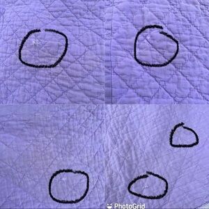 Vintage Embroidered Lily Pad Floral Hand Stitched Quilt. Lavender and White with 6 blocks of hand embroidered Lily pads with Yellow flowers. Solid White backing. Such a beautiful and unique pattern! Intricate hand stitching and diamond quilted pattern. Lighter, summer weight. Age unknown-purchased secondhand in the 1970’s by my mother and it was already quite old at that time. It may be nearing antique age (100 + years old).