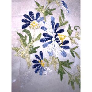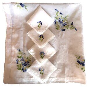 VTG Embroidered Sheer Table Cover 4 Matching Beverage Napkins Blue Green Floral