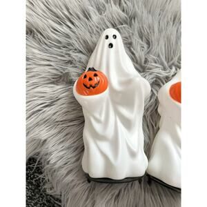 VTG Empire Halloween Ghost W/Jackolantern Blow Mold Pathway Lights Toppers Set/3