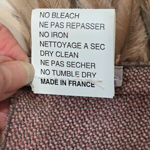 This vintage scarf by Stella Cadente PARIS is a one-of-a-kind designer accessory that will add a touch of bohemian elegance to any outfit. Made from a nubby wool blend and trimmed with wispy emu feathers, the scarf is both warm and durable, ensuring that it will last for years to come. Measuring 42" in length, plus feather trim, and 8" in width when opened flat, this scarf is the perfect size to be both versatile and comfortable to wear. The scarf features a beautiful mauve, grey, and blush color palette that will complement any skin tone. It was originally designed in the 1990s and has since become a vintage accessory that is highly sought after. The scarf's unique style and designer exclusivity make it a must-have for any fashion-forward woman. MADE IN FRANCE