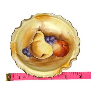 VTG Enesco CREAMER & SAUCER Pitcher Plate Fruit Apple Pear Grapes Gold Trim 3.5"