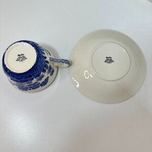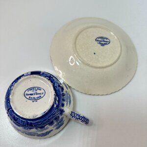 Crafted with precision and elegance, these Copeland Spode's Tower blue/white tea cups & saucers are a testament to timeless design and craftsmanship. Originating from England, these dishes showcase the classic Spode's Tower pattern with its intricate blue & white tower detail, finished with a beautiful glazed coating that highlights its charm. These original vintage pieces are a rare find, and are perfect for all occasions.
