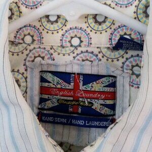 VTG English Laundry Christopher Wicks Large Men's Embroidered Short Sleeve Button Up Striped Shirt Hand Sewn. Measurements are Pit to Pit:22" Length:29" Very Good Condition