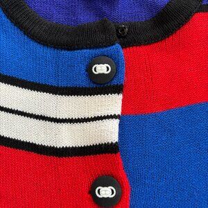 Vintage Eric Steven Sweater Womens 14 Geometric Colorblock Button Cardigan USA 90's