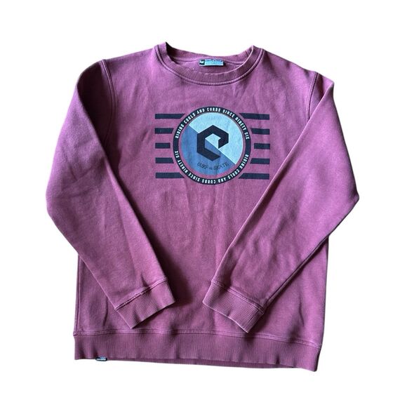 VTG Ericeira Skate Surf Riding Curls And Curbs Burgundy Crew Neck Sweatshirt.
