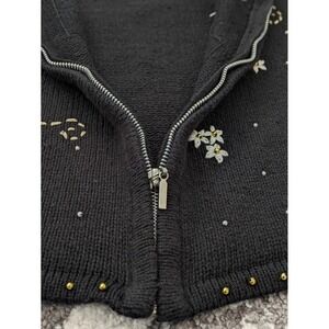 VTG Erika Christmas Sweater Vest Beaded Embroidered Holiday Poinsettia
