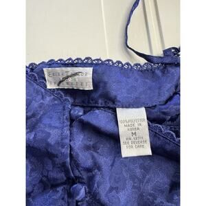 VTG Erika Taylor Navy Embossed Leopard Print Satin Camisole Nightie Top sz M