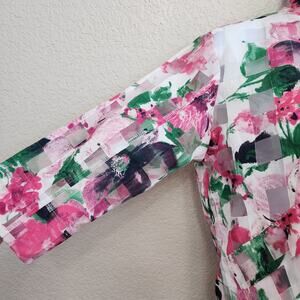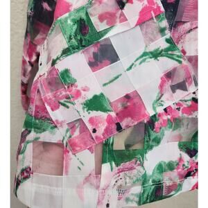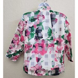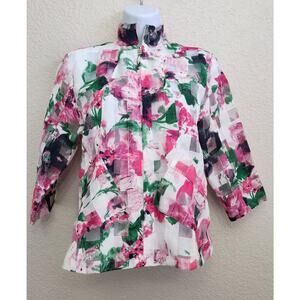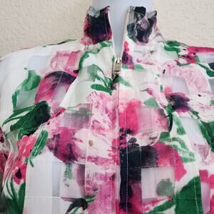 VTG Erin London Pink Green Floral Sheer Full Zip Blazer PS Lightweight Pockets