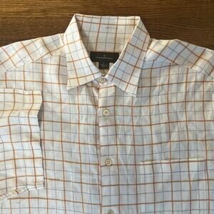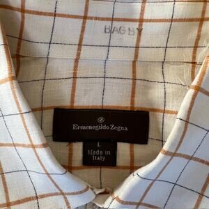 VTG Ermenegildo Zegna 100% Linen Button Up Shirt Mens L Short Sleeve Plaid READ