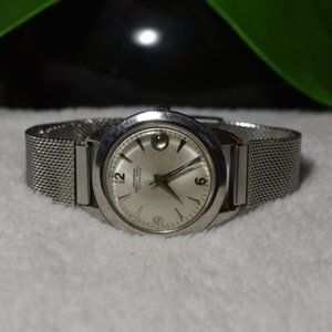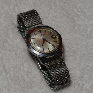 SUPER clean and functional Ernest Borel Post- Deco Sterling Silver Face Watch with Stainless Steel Band.
