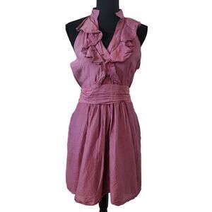 VTG Esley Silk Ruffle Knee Halter High Neck V-Neck Mauve Dress Romantic LG