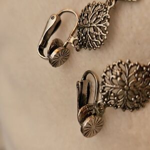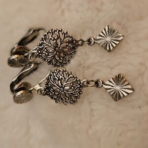 VTG Estate 1950s Dainty Floral Atomic Sunburst Dangle Drop Clip-on Earrings