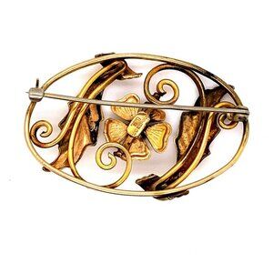 VTG Estate BB 1/20th 12K Gold Filled Flower Leave Floral Oval Brooch Pin! 42