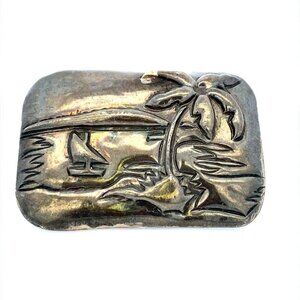 VTG Estate Hallmark Mexico Silver Tropical Palm Tree Sea Boat Belt Buckle! 101