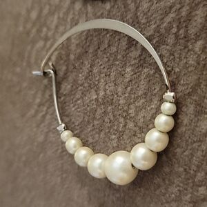 VTG Estate Pearl Beaded Huggie Hoop Earrings