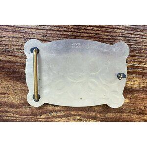 This auction is for one large vintage belt buckle. This is marked nickel silver and measures 3 ¾" by 2 ½" and has a weight of 2.03 grams. This has a bull/toro emblem that measures 2” by 2 ¼". This can be worn on a belt that is 1 ½" wide. Very nice.