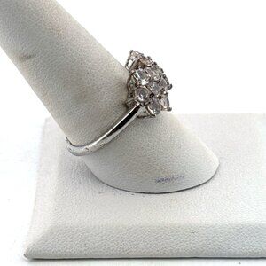 • VTG Estate Sterling Silver 925 TGGC Cluster Bypass Ring Sz 9 3.3g Floral Design