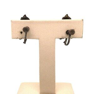 This auction is for one pair of lovely vintage earrings. These are not pierced and are screw back. These are designed out of sterling silver and feature green rhinestones. These measure ¾" by 1” and these have a weight of 3.97 grams. Patina throughout. Nice.