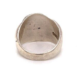 This auction is for one estate size 6.75 ring. This is designed out of sterling silver and features a hammered finish. The face of the ring measures 5/8” and has a weight of 11 grams. Has natural patina throughout. Nice.