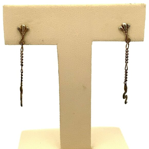 VTG Estate Sterling Silver Long Dangle Drop Pierced Snake Earrings! 188