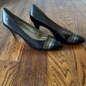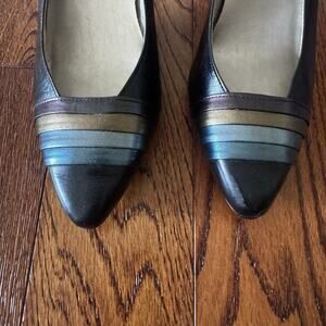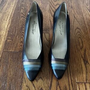 VTG Etienne Aigner Womens 8N Pumps Black Metallic Stripe Made in Spain Damage