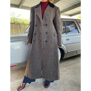 š„šGorgeous Vintage Evan Picone 100% Pure Wool Herringbone Tweed Double Breasted Overcoat SM